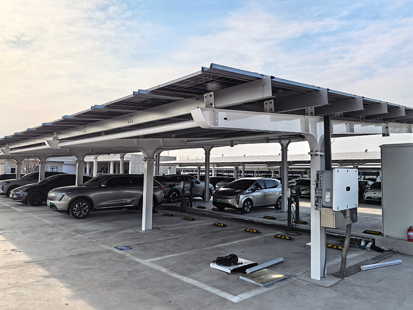 厦航天津基地储备用地光充一体化项目由天津仁海电力工程有限公司施工建设,本工程为光充一体化项目,总建筑面积约10000平方米,位于天津市东丽区,利用停车场车棚顶建设光伏电站,通过“光伏发电+充电服务”的综合模式提高年综合收益,极大降低了用户的用能成本,促进可再生能源使用,提高能源自给自足能力。